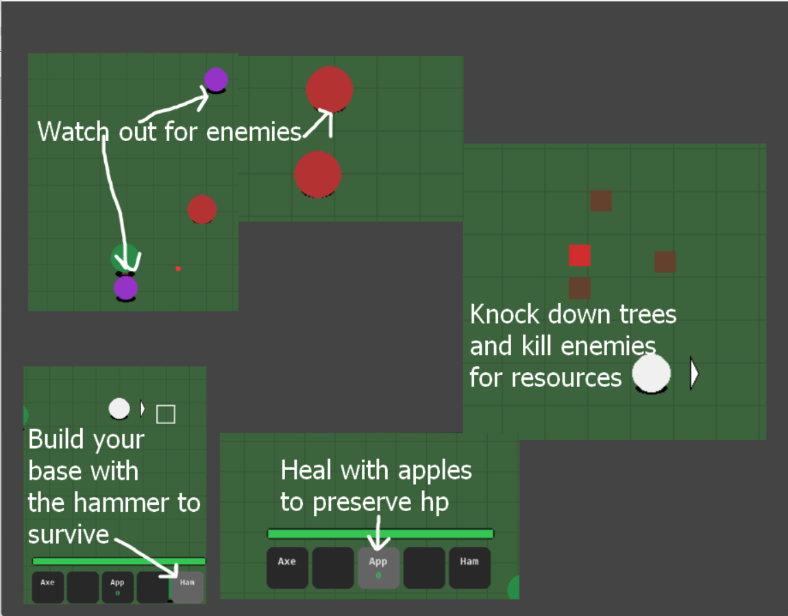 This is a pre demo of the currently developing survival game. Each day your experience will get harder so dont forget to save the game by pausing it and hitting s. Defeat your enemies and build your base to survive. Expect further updates soon. Game's controls can be found in the menu.